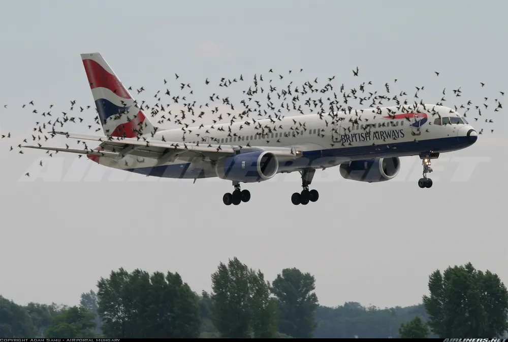 - 충격력: 시속 370㎞로 비행 중인 항공기에 900g의 새가 충돌하면 약 4.8t의 충격 발생.