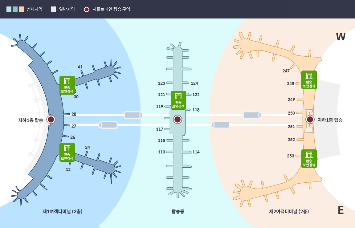 각 터미널의 출국장 입구에서 쉽게 찾을 수 있습니다.